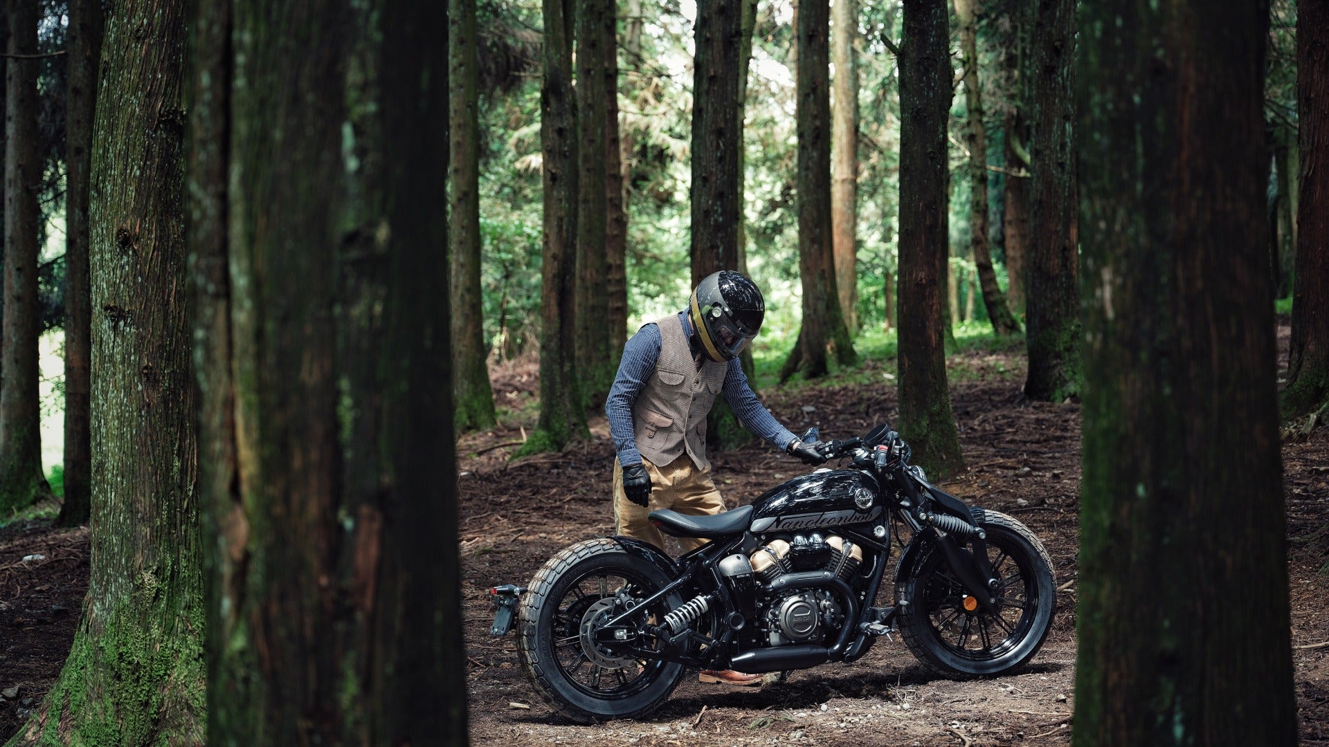 El cuadro de instrumentos mixto, analógico y digital, ofrece una lectura clara e inmediata. La posición del manillar y la altura del asiento proporcionan una postura cómoda y natural, tanto en ciudad como en desplazamientos prolongados. Detalles como los retrovisores redondos y el depósito compacto mantienen el espíritu bobber con un enfoque moderno y práctico.