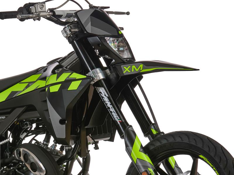 La motard XM 50 Performance está equipada con una horquilla de 41 mm con barras invertidas y suspensión trasera Fantic, basculante de sección variable y bieletas progresivas. Los gráficos también son nuevos, ofrecidos en dos combinaciones de color "White Version" y "Black Version" con líneas que recuerdan el mismo Fantic Racing Factory Feeling.