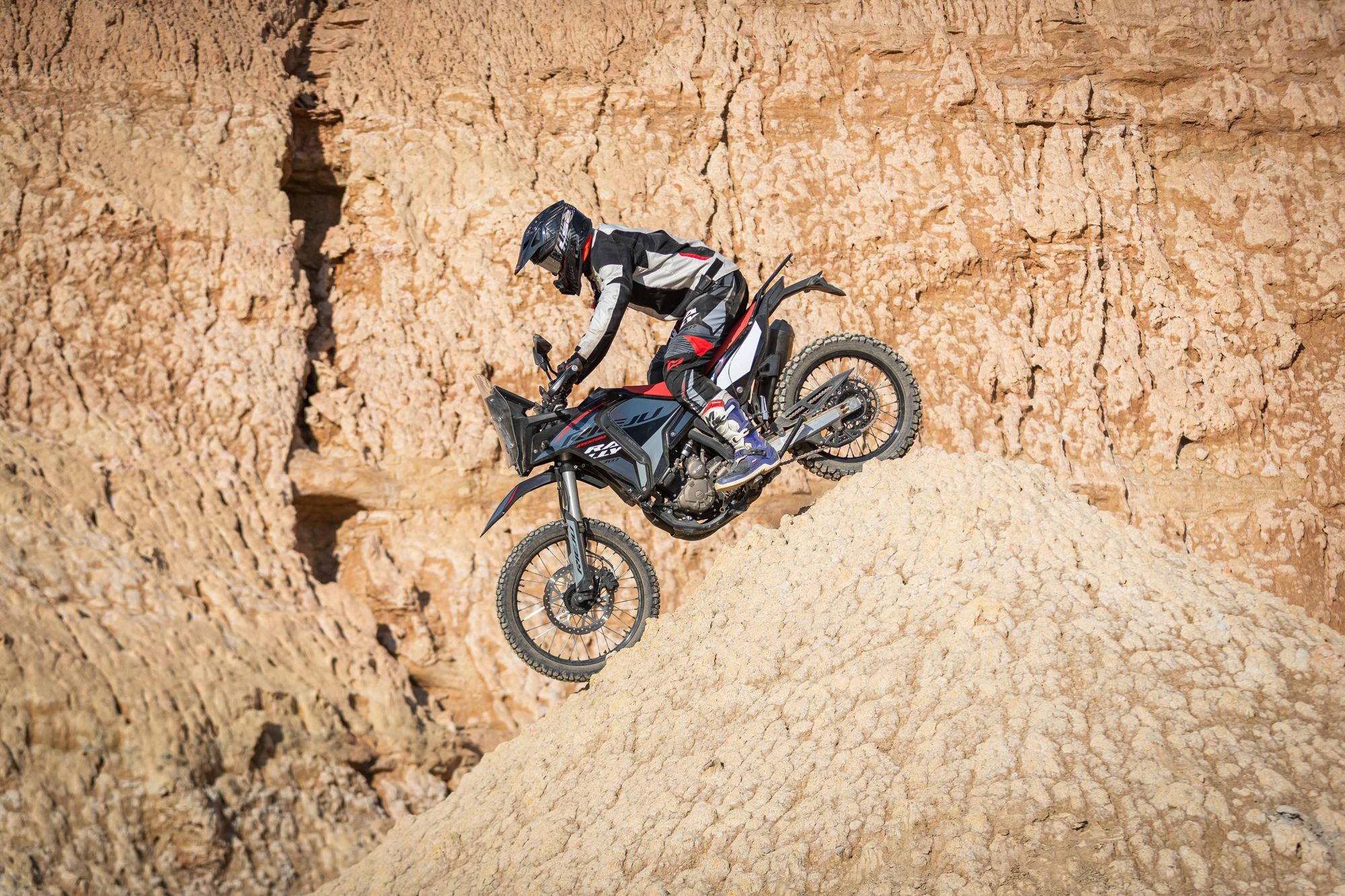 Diseño inspirado en las grandes motos del Rally Raid: líneas agresivas, carenado envolvente, protector de cárter y una silueta ligera y funcional; cuya estructura ha sido pensada para resistir, proteger y rendir en cualquier terreno.