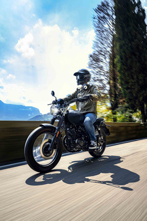 El encanto y la elegancia se unen en el diseño moderno de la Keeway X-Light 125, creando una café racer innovadora y cautivadora. Con un inconfundible estilo vintage realzado por componentes exclusivos, el X-Light 125 está listo para conquistar las calles de la ciudad, saboreando la atmósfera de un viaje atemporal.