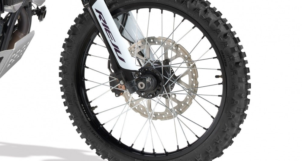 La RIEJU AVENTURA RALLY 307R equipa de serie los MICHELIN Tracker, unos neumáticos diseñados para ofrecer máximo rendimiento Off-Road sin renunciar a la versatilidad en uso mixto. Destacan por su extraordinaria tracción en terrenos sueltos como arena, grava o tierra; y una excelente capacidad de evacuación del barro, garantizando control y estabilidad en todo momento.