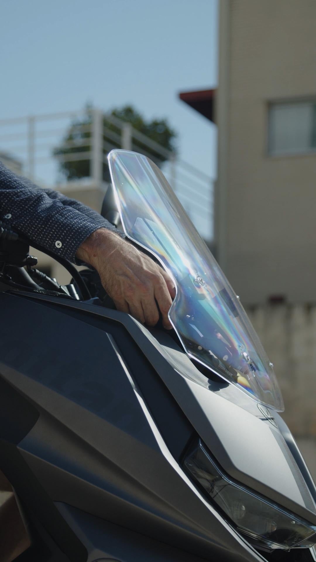 La cúpula regulable permite adaptar la protección aerodinámica según el trayecto o la estatura del conductor. Una solución ideal para ganar confort tanto en ciudad como en carretera. |