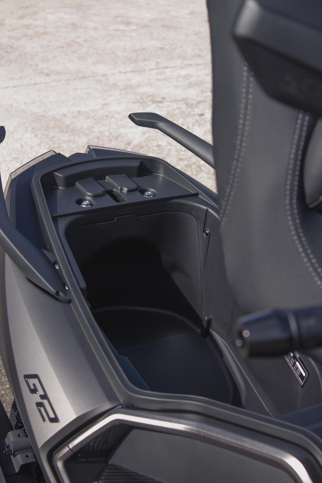 El compartimento bajo el asiento ofrece espacio suficiente para guardar un casco integral y otros objetos del día a día. Un hueco amplio, práctico y pensado para ganar comodidad en cada desplazamiento. |