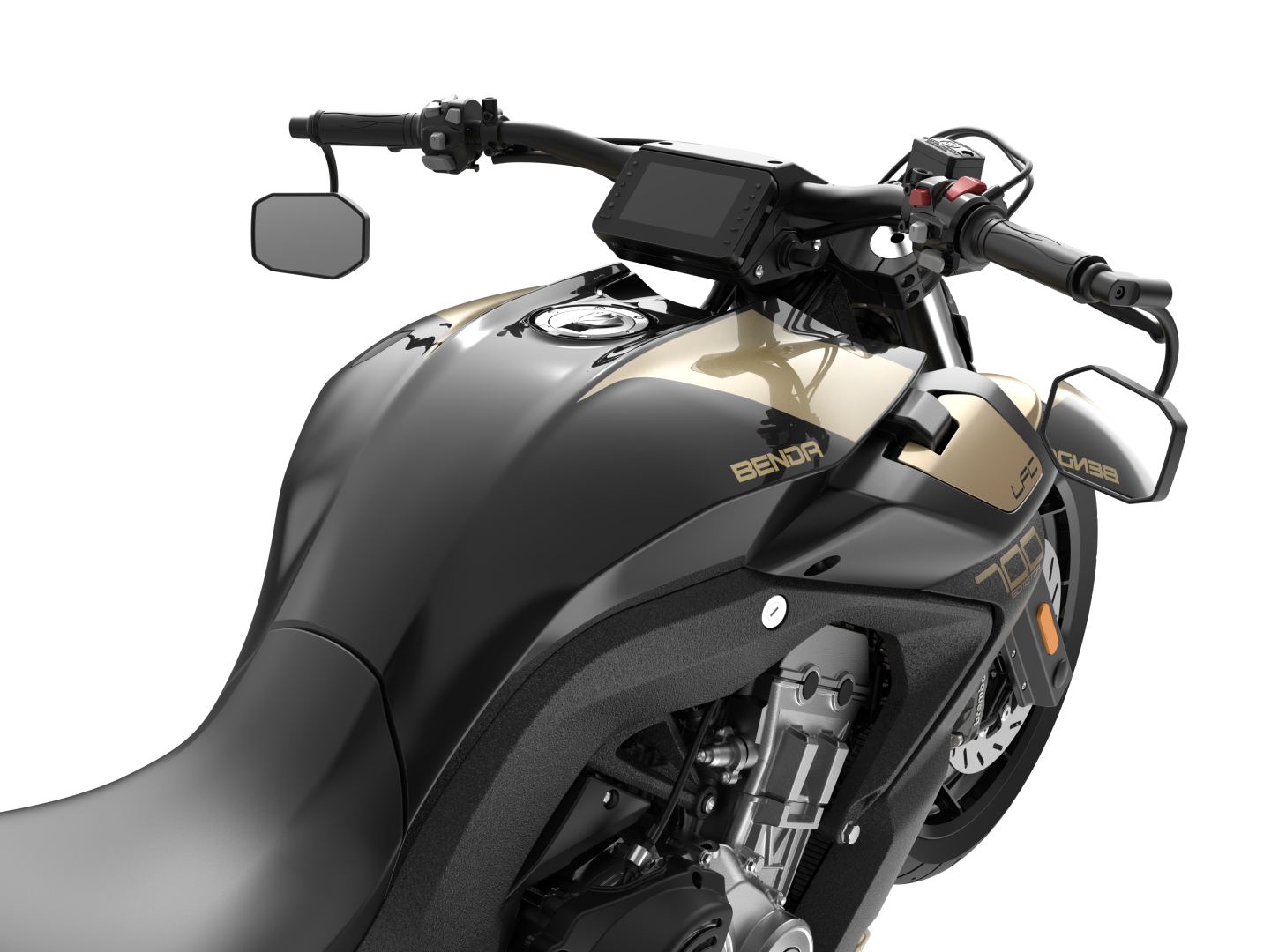 La Benda LFC700 PRO redefine con audacia el concepto de power cruiser moderno. Impulsada por un agresivo motor de cuatro cilindros en línea, un lenguaje de diseño futurista y una innovadora suspensión neumática de doble cámara, combina músculo puro con inteligencia refinada.