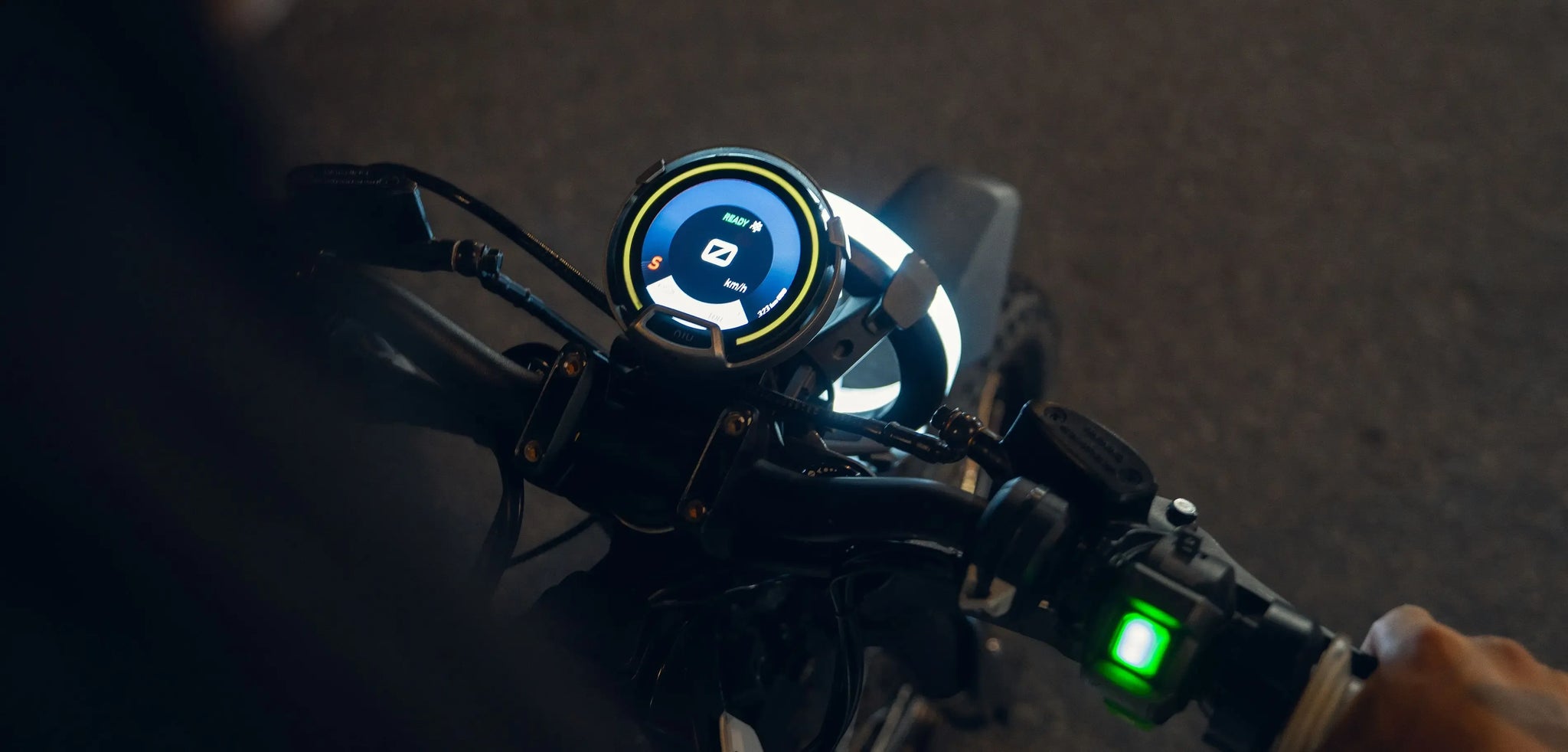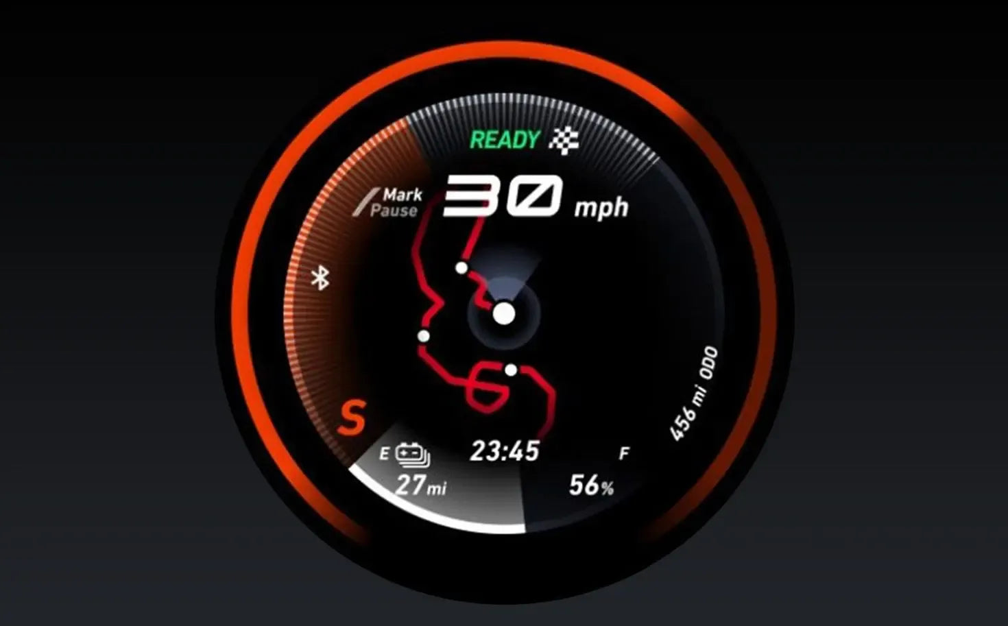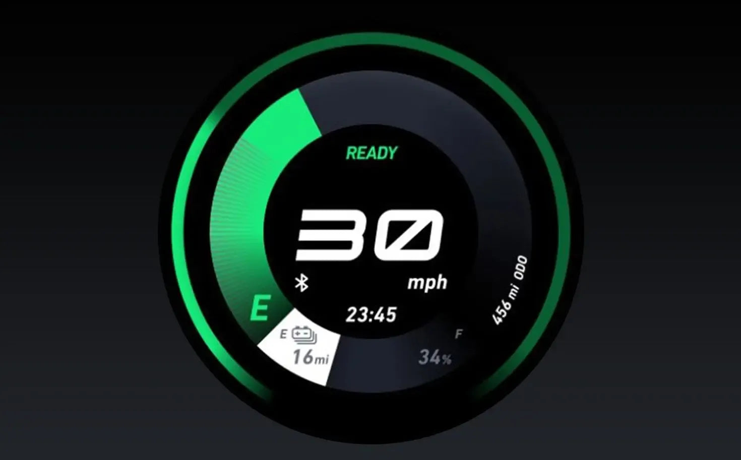 | Disfruta del paseo | Experimenta la libertad de la carretera abierta con nuestro modo de conducción fluido. Esta vista del tablero de instrumentos se enfoca en brindarte toda la información esencial que necesitas para un viaje cómodo. Mantén un seguimiento de tu velocidad, duración de la batería y distancia recorrida de un vistazo. |
