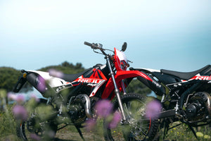 Pese a su contenido precio, no vas a encontrar nada a faltar en la nueva MRT: frenos de disco en ambas ruedas, potente motor Minarelli NG de refrigeración líquida de gran rendimiento, suspensiones de largo recorrido y neumáticos de tipo mixto para que puedas volar igual de bien por asfalto como en tierra.