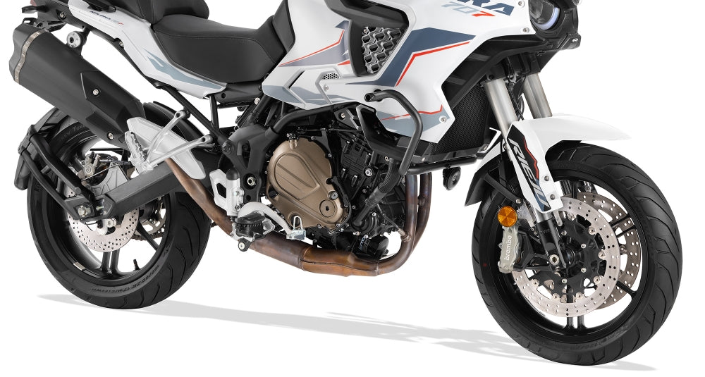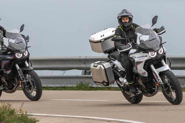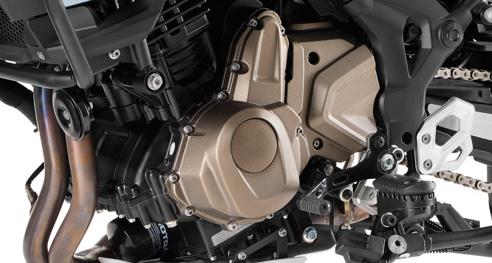 Su motor bicilíndrico 4T de 700 cc, homologado Euro 5+, entrega 70 CV de potencia y un par máximo de 70 Nm, garantizando una respuesta rápida, precisa y siempre utilizable en cualquier situación. La parte ciclo está a la altura de su carácter viajero, con suspensiones KYB, llantas de aluminio de 17” y un potente sistema de frenos con doble disco delantero y pinzas radiales de 4 pistones, acompañado de disco y pinza trasera para un control total.